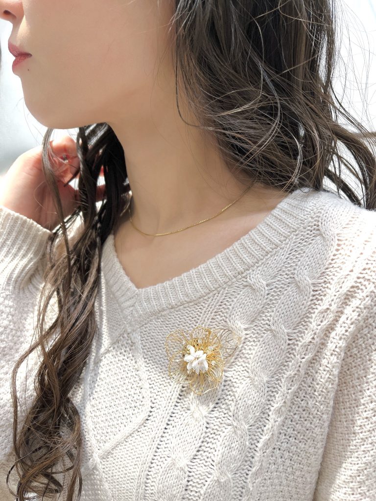 クリスマスローズではありますが、一年中ご利用いただける先生お得意のブローチです。