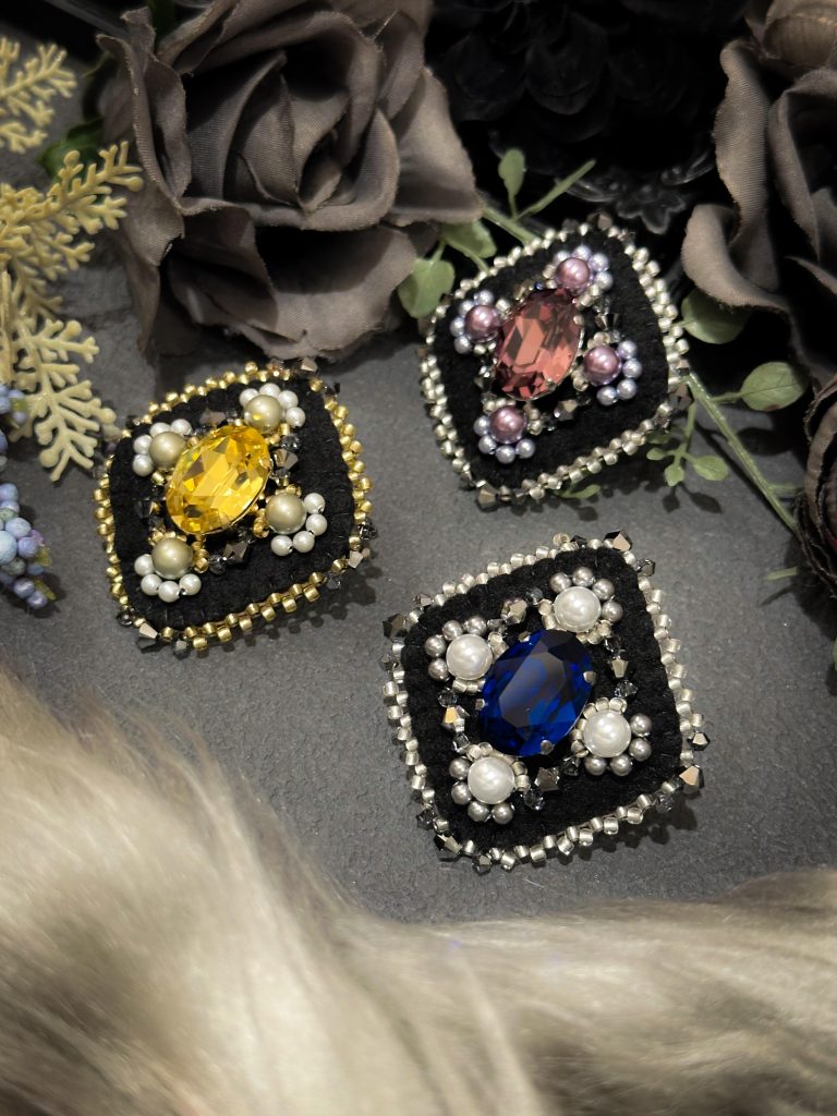 貴和クリスタルをメインに、クラシカルなデザインのブローチをお作りいただけます。