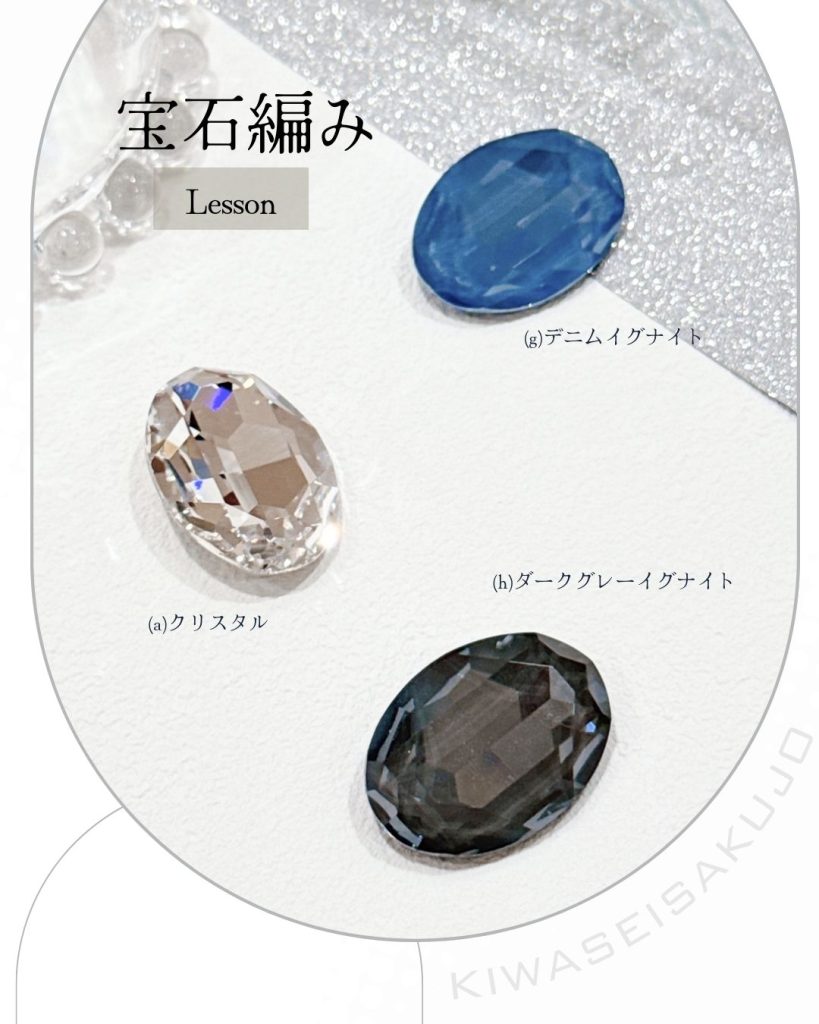 講習会では、貴和クリスタルのカラーを8色から、ビーズのカラーを3色からお選びいただけます。