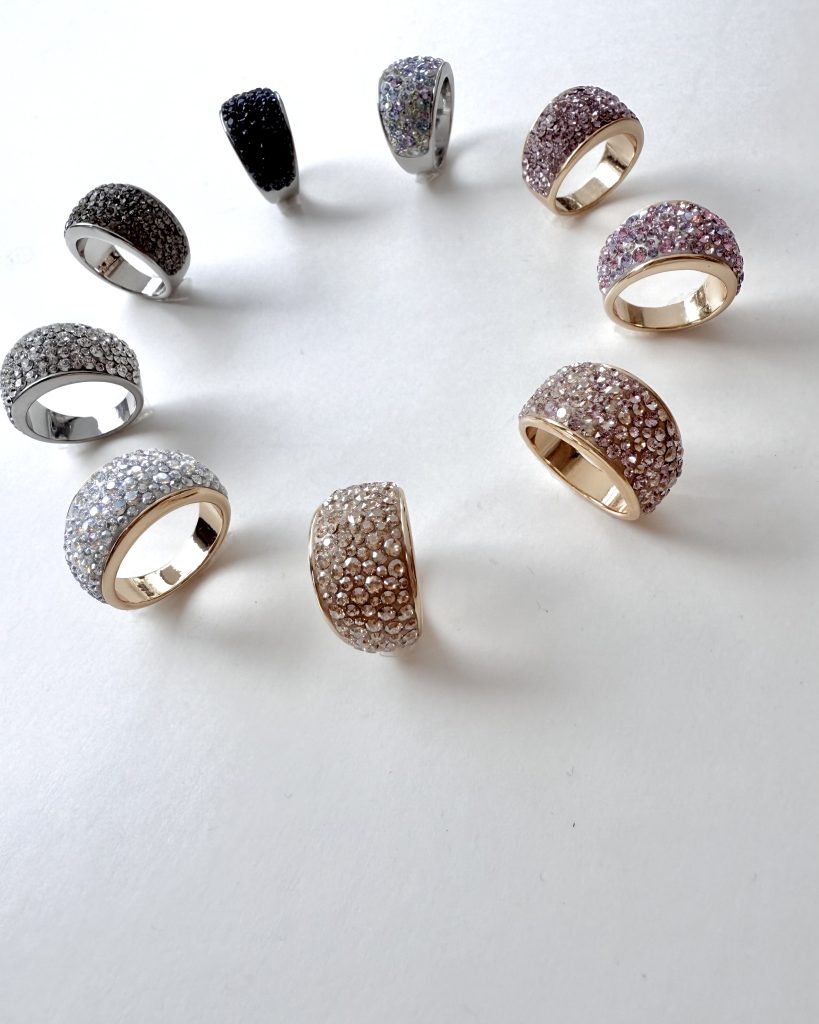 今回は人気のボリュームリング土台に細かなクリスタルを乗せていきます。